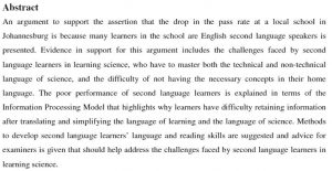 An Argument in Support of the Assertion that the Decline in the National Pass Rate in Science can be Attributed to the Problem of English as a Second Language for many Science Learners