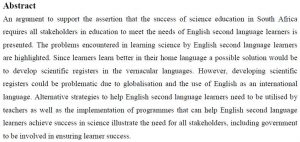 This was the first component of the Language and Learning course of the B.Sc Honors in Science Education completed at the University of the Witwatersrand.