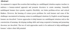 An Argument in Support of the Assertion that Teaching in a Multilingual Classroom Requires Teachers to Embrace a Learner-centred Approach and Promoting Discourse to Create Meaning